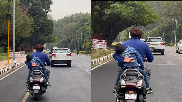 சமூக வலை தளங்களில் தற்போது சிறிய வீடியோ ஒன்று காட்டு தீயாய் பரவி வருகிறது. இந்த வீடியோவில் டர்பன் அணிந்த நபர் ஒருவர், ஸ்கூட்டர் ஓட்டி செல்வதை நம்மால் காண முடிகிறது. அவருக்கு பின்னால் பில்லியன் இருக்கையில் சிறுவன் ஒருவன் அமர்ந்துள்ளான்.
