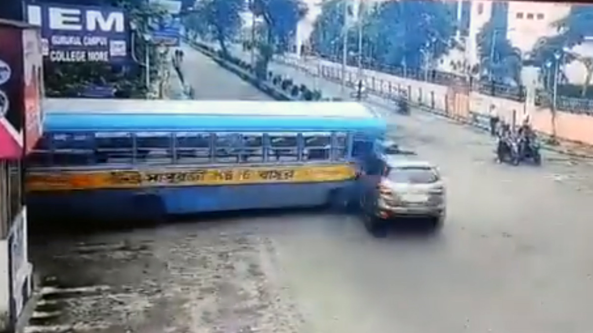 மேற்கு வங்க மாநில தலைநகர் கொல்கத்தாவில் இந்த விபத்து நடைபெற்றுள்ளது. பஸ் ஒன்றும், ஃபோர்டு எண்டேவர் (Ford Endeavour) கார் ஒன்றும் இந்த விபத்தில் மோதி கொண்டுள்ளன. பஸ் டிரைவர் சிக்னலை மதிக்காமல் வந்த காரணத்தால்தான் இந்த விபத்து நடைபெற்றதாக தகவல்கள் தெரிவிக்கின்றன.