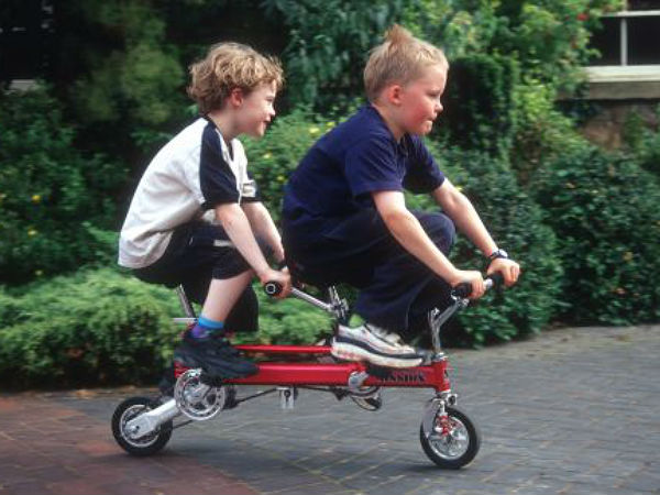 மூன்று வெவ்வேறு அளவுள்ள சக்கரங்கள் கொண்ட சைக்கிள்.
