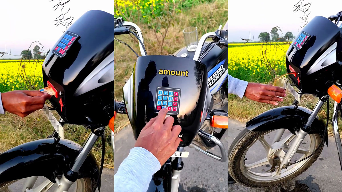 ஸ்பிளெண்டர் பைக்கின் முகப்பில் ஹெட்லைட் வழங்கப்படும் இடத்தில் கார்டை நுழைக்கும் பகுதியை வழங்கியுள்ள இந்த இளைஞர், அதற்கு மேலே ஏடிஎம் மெஷின் (Machine)-இல் இருப்பதை போன்று பொத்தான்களை கொடுத்துள்ளார். ஏடிஎம் மெஷினில் கூட எண்கள் மட்டும்தான் இருக்கும். ஆனால், இந்த நபர் உருவாக்கியுள்ள ஏடிஎம் பைக்கில் எண்கள் உடன் சேர்த்து சில ஆங்கில எழுத்துகளை கொண்ட பொத்தான்களும் வழங்கப்பட்டுள்ளன.
