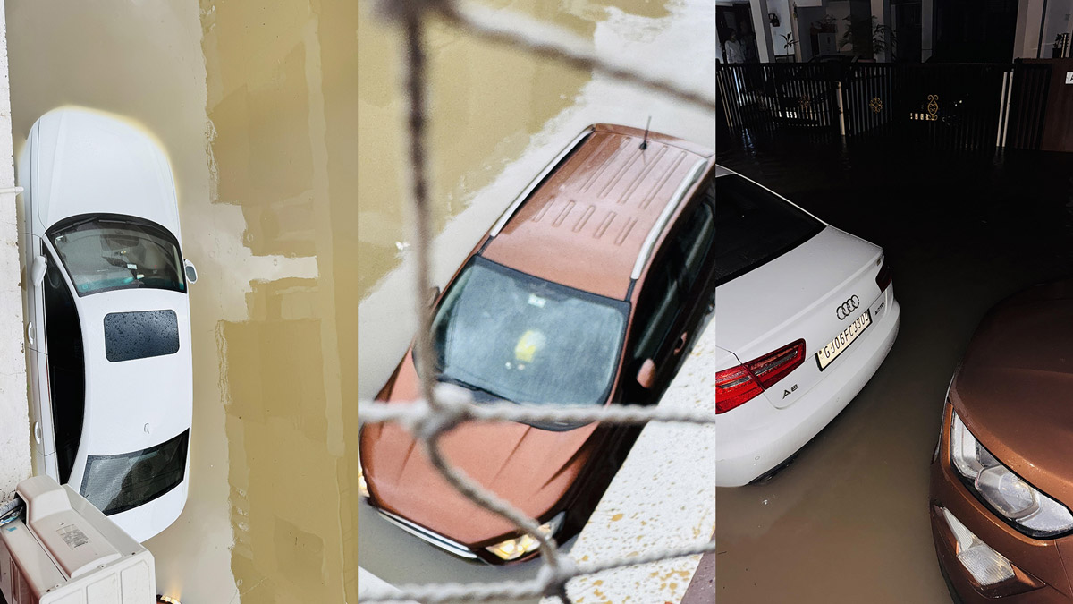அத்தகைய சமயங்களில் கார் ஓனர்களால் ஒன்றும் செய்ய முடிவதில்லை. அவ்வாறான சூழல் இங்கு ஒரு கார் உரிமையாளருக்கு ஏற்பட்டுள்ளது. குஜராத்தை சேர்ந்தவரான இந்த நபரிடம் ஆடி கார், ஃபோர்டு ஈக்கோஸ்போர்ட், மாருதி சுஸுகி சியாஸ் உள்ளிட்ட கார்கள் உள்ளன. சாலையில் நிறுத்தி வைக்கப்பட்டு இருந்த இவை அனைத்தும், கனமழையினால் ஏற்பட்ட வெள்ளத்தில் சிக்கியுள்ளன. இதனை வருத்தத்துடன் அந்த நபர் தனது சமூக வலைத்தள பக்கங்களில் தெரிவித்துள்ளார்.
