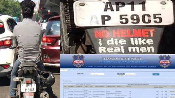 தெலுங்கானா மாநிலம் ஐதராபாத்தில் உள்ள ஒரு சிக்னலில் தனது பல்சர் பைக்கில் ஒரு வாலிபர் ஹெல்மெட் அணியாமல் நின்று கொண்டிருக்கும் காட்சி சமூக வலைதளங்களில் வெளியானது.