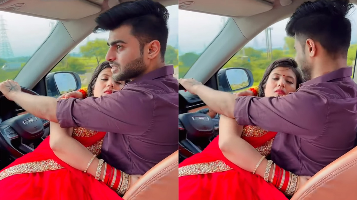 ஆம், கணவன் காரை ஓட்டி கொண்டிருக்க, மனைவி அவரது மடியில் படுத்து கொண்டு பயணம் செய்கிறார். கணவனின் ஒரு கை, மனைவி மீது இருக்கிறது. எனவே ஒரு கையில்தான் அவர் ஸ்டியரிங்கை கண்ட்ரோல் செய்கிறார். கூடவே வீடியோவின் இறுதியில், அவர் சாலையில் இருந்து கண்களை எடுத்து விட்டு, மனைவியை முத்தமிடுவதையும் நம்மால் பார்க்க முடிகிறது.