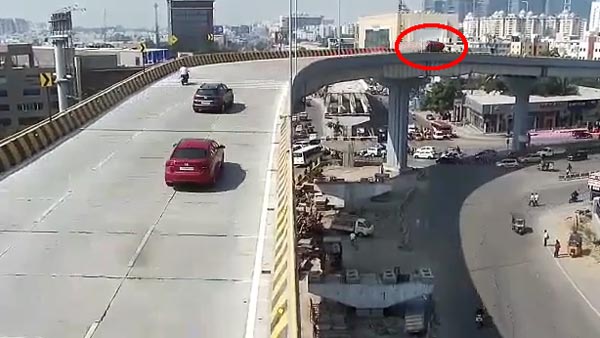 ஆனால் இதையெல்லாம் வாகன ஓட்டிகள் ஒரு பொருட்டாகவே எடுத்து கொள்வதில்லை என்பதை ஐதராபாத் நகரில், கடந்த சனிக்கிழமை மதியம் நடைபெற்ற ஒரு விபத்து நிரூபணம் செய்தது. பாலத்தில் அதிவேகமாக சென்ற கார், எதிர்பாராதவிதமாக திடீரென நிலைதடுமாறி கீழே விழுந்ததில் பெண் ஒருவர் பரிதாபமாக உயிரிழந்தார்.