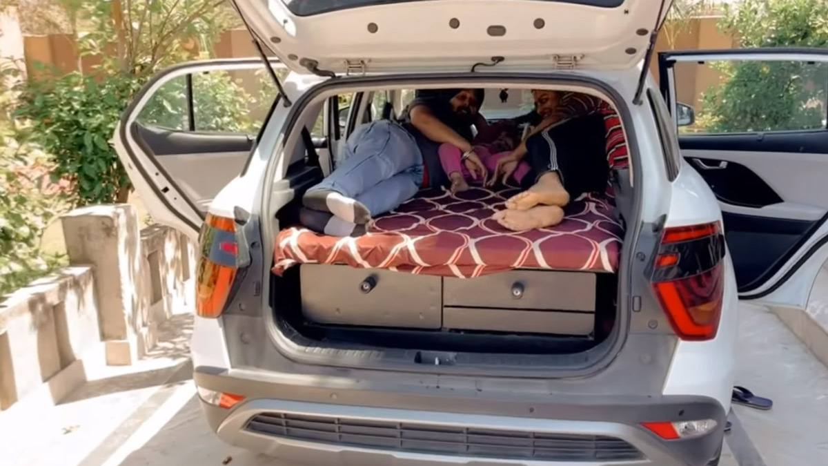 Ghumakkad bugz என்ற யூடிப் சேனலில் ஒரு வீடியோ ஒன்று வெளியாகியுள்ளது. அதில் ஒரு ஜோடி தங்கள் ஹூண்டாய் கிரெட்டா காரை விடப் போல மாற்றி அதில் வாழ்ந்து வருகின்றனர். இதில் சுவாரஸ்யமான விஷயம் என்னவென்றால் இவர்களுக்கு இரண்டு குழந்தைகள் இருக்கின்றனர். அவர்களும் தாராளமாக இதில் வாழ்ந்து வருகின்றனர். இதை இந்த குடும்பத்தினர் சுற்றுலா செல்லும் போது மட்டும் ஒரு வீடாக இதைப் பயன்படுத்தி வருகின்றனர்.