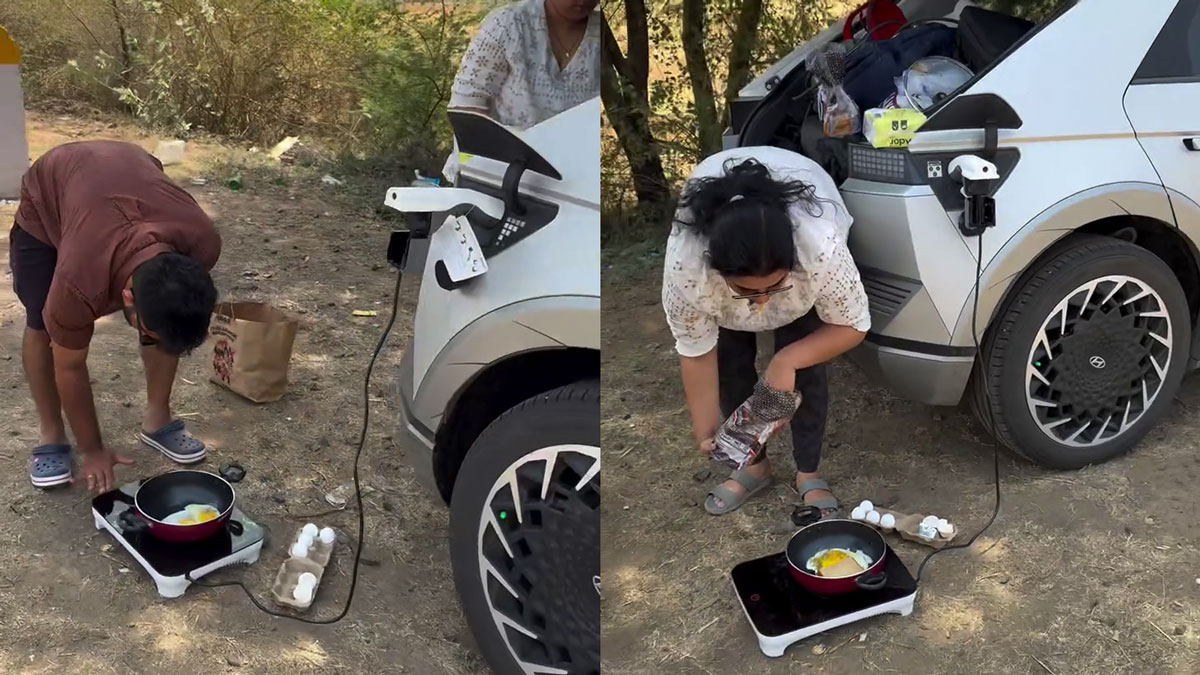 அப்படித்தான் இங்கு ஒரு தம்பதியினர் தங்களது ஹூண்டாய் ஐயோனிக் 5 (Hyundai Ioniq 5) எலக்ட்ரிக் காரின் மின்சாரத்தை உபயோகித்து மின் அடுப்பை பற்றி வைத்து ஆம்லெட் (Omelette) போட்டு சாப்பிட்டுள்ளனர். இதுதொடர்பான வீடியோ இன்ஸ்டாகிராமில் (Instagram) வெளியிடப்பட்டுள்ளது. இந்த வீடியோவில், ஆள் நடமாட்டம் அதிகமாக இல்லாத சாலையின் ஓரத்தில் ஹூண்டாய் ஐயோனிக் 5 எலக்ட்ரிக் கார் ஒன்று நிறுத்தி வைக்கப்பட்டு இருப்பதை காண முடிகிறது.