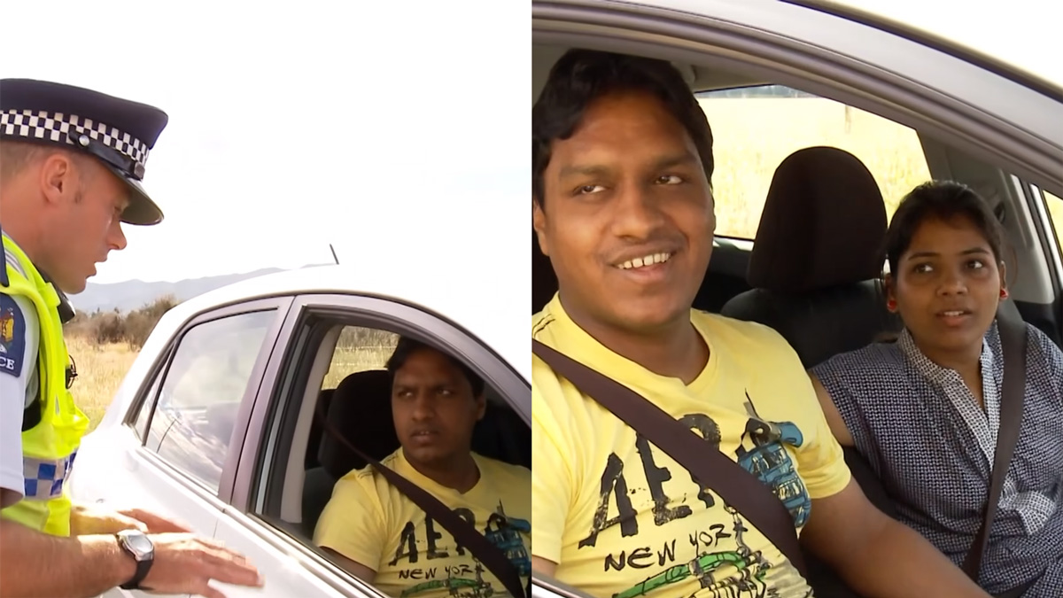 இதனை அடுத்து, காரை நிறுத்தி அந்த தம்பதியிடம் போலீஸார் விசாரணையை துவங்கி உள்ளார். அதனை கீழே பதிவிடப்பட்டுள்ள வீடியோவில் காணலாம். காருக்குள் ஓட்டுனர் இருக்கையில் இருந்தவரிடம், நியூசிலாந்தின் வேக வரம்பு எவ்வளவு என்று தெரியுமா என அந்த போலீஸ்காரர் கேட்பதில் இருந்து இந்த வீடியோ துவங்குகிறது.