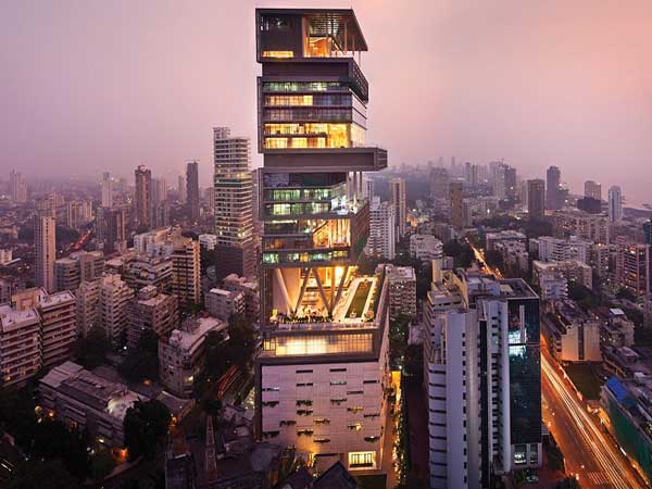 மும்பையிலுள்ள முகேஷ் அம்பானியின் அன்டிலியா வீடு 173.13 மீட்டர் உயரம் கொண்டது. மொத்தம் 27 தளங்களை கொண்டது. ஒவ்வொரு தளங்களும், சாதாராண வீட்டின் மூன்று தளங்களுக்கு ஒப்பான உயரம் கொண்டது. 4 லட்சம் சதுர அடி பரப்பளவுக்கு இடவசதி கொண்டது. சாதாரண வீடாக இதனை கட்டியிருந்தால், 60 மாடிகள் கொண்டதாக இருந்திருக்கும். இந்த வீட்டின் மதிப்பு ரூ.6,400 கோடியாக தெரிவிக்கப்படுகிறது.