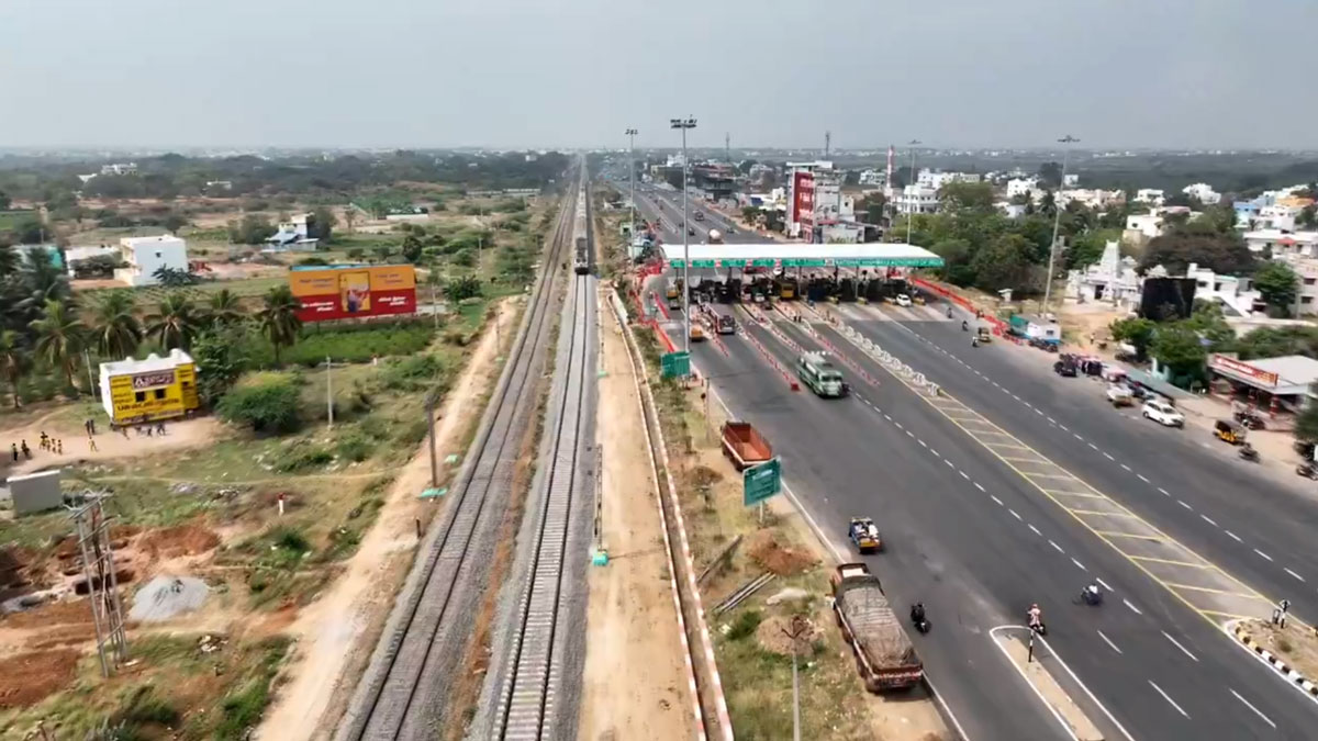 பெரும்பாலும் தேசிய நெடுஞ்சாலைகள் இணைக்கப்பட்ட ஊர்களில் அதற்கு இணையாகவே ரயில் பாதைகள் அமைக்கப்பட சாத்தியக்கூறுகள் இல்லாத சூழ்நிலை தான் நிலவும். ஆனால் தமிழகத்தின் குறிப்பிட்ட பகுதியில் இப்படியான ஒரு சாலை இருக்கிறது. இதை தென்னக ரயில்வே நிர்வாகம் ட்ரோன் மூலம் வீடியோ எடுத்து தனது எக்ஸல பக்கத்தில் வெளியிட்டுள்ளது.