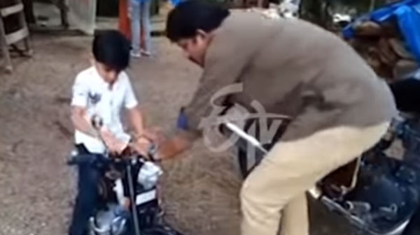 அந்த சிறுவன் தற்போது மினி ராயல் என்பீல்டு புல்லட் மோட்டார்சைக்கிளை ஜாலியாக ஓட்டி வருகிறார். இது அவரது தந்தையால், வீட்டிலேயே உருவாக்கப்பட்டது என்பதுதான் அந்த பைக்கின் சிறப்பம்சம். இது பார்ப்பதற்கு அச்சு அசலாக ஃபுல்-சைஸ் ராயல் என்பீல்டு புல்லட் மோட்டார்சைக்கிளை போன்றே காட்சியளிக்கிறது.