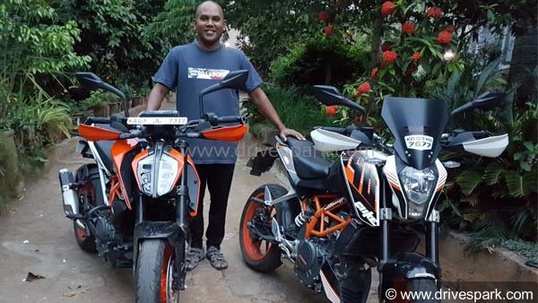 பழைய கேடிஎம் ட்யூக் 390 பைக்கை பயன்படுத்தி வந்த தீபக் சின்னப்பா, அந்த பைக்கின் மீது இருக்கும் காதலால், கடந்த ஆண்டு விற்பனைக்கு அறிமுகம் செய்யப்பட்ட புதிய கேடிஎம் ட்யூக் 390 பைக்கையும் ஆசை ஆசையாய் வாங்கி இருக்கிறார். இரண்டையுமே வீட்டில் வைத்திருக்கிறார்.