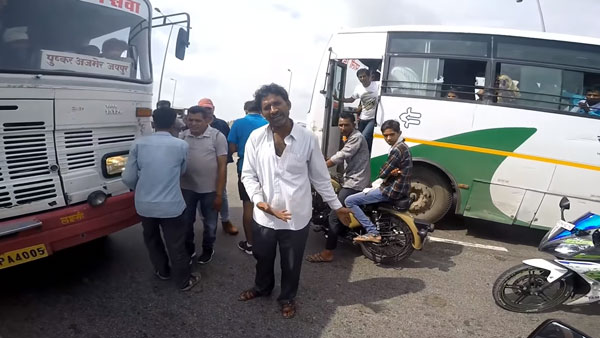 இதனிடையே பஸ்ஸின் முன்பாக தனது பைக்கை அந்த ரைடர் நிறுத்தி விட்டதால், அவருக்கும், பஸ்ஸின் உதவியாளருக்கும் இடையே வாக்குவாதம் ஏற்பட்டது. எனவே ஏராளமான வாகன ஓட்டிகள் அங்கு குவிந்து விட்டனர். நிலைமை விபரீதமாவதை உணர்ந்த பஸ் டிரைவர் ராங் சைடில் வந்த தனது தவறை ஒப்புக்கொண்டார்.
