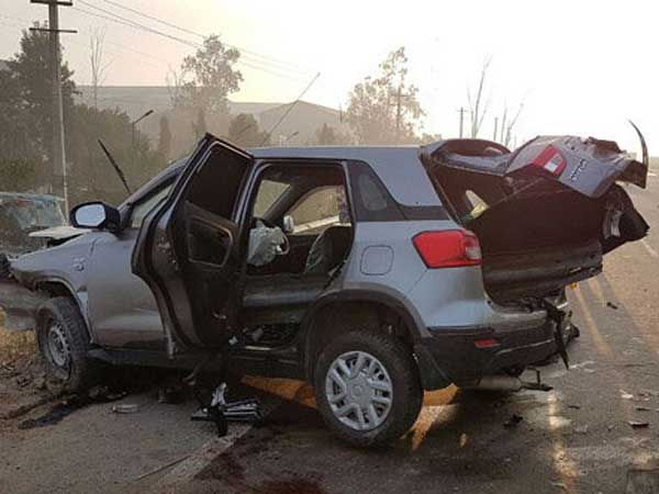 டெல்லி அருகே நெடுஞ்சாலையில் அதிவேகமாக வந்த மாருதி விட்டாரா பிரெஸ்ஸா கார் சாலை தடுப்பில் மோதி பயங்கரமாக விபத்துக்குள்ளானது. இந்த விபத்தில் பொறியியல் பட்டப்படிப்பு மாணவர்கள் இரண்டு பேர் பரிதாபமாக உயிரிழந்தனர்.