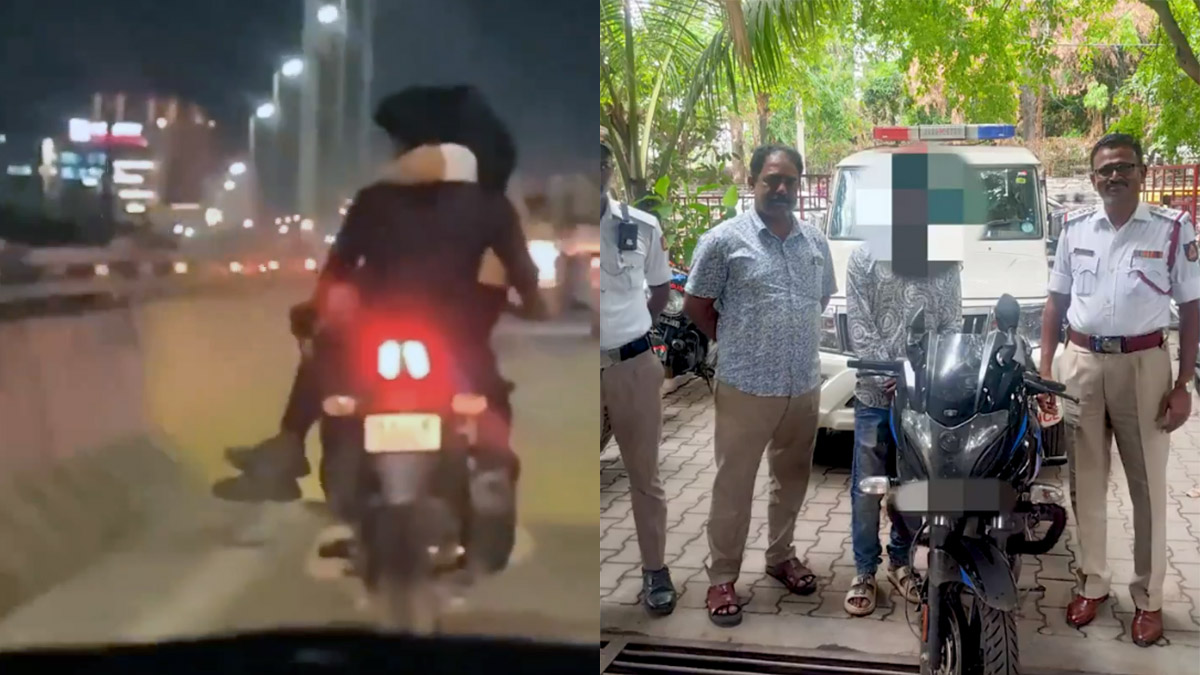 மேலும், இந்த சம்பவத்தில் அவர்கள் பயன்படுத்திய பஜாஜ் பல்சர் மோட்டார்சைக்கிளும் பறிமுதல் செய்யப்பட்டுள்ளது. இதுதொடர்பாக, பெங்களூர் போக்குவரத்து போலீசார் வெளியிட்டுள்ள எக்ஸ் பதிவில், "ஏய்... திரில்லை தேடுபவர்களே, ஸ்டண்ட்களுக்கான மேடை சாலை அல்ல! நீங்கள் உள்பட அனைவரையும் பாதுகாப்பாக வைத்திருப்போம். பொறுப்புடன் வாகனம் ஓட்டுவோம்" என குறிப்பிட்டு வீடியோவை பகிர்ந்துக் கொண்டுள்ளனர்.