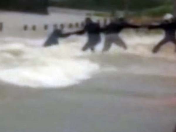 மழை வெள்ளத்தில் பைக்குடன் இழுத்துச் செல்லப்பட்டவர் பத்திரமாக மீட்கப்பட்ட காட்சிகள்!