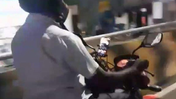 டூவீலரை ஓட்டிக்கொண்டே இந்த நபர் செய்த காரியத்தை பாருங்க... சமூக வலை தளங்களில் வைரலாகும் வீடியோ!