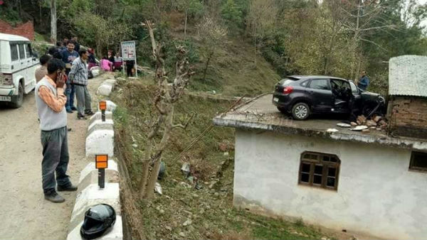 ஹிமாச்சல பிரதேசத்தில் உள்ள மாண்டி என்ற மாவட்டத்தின் சகர்காட் சாலையில் சென்றுக்கொண்டு இருந்த ஒரு மாருதி பலேனோ கார், அவசர நிலை ஏற்பட்டதன் காரணமாக பறந்து சென்று ஒரு வீட்டின் மேற்கூரையில் தரையிறங்கியது.