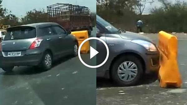 டோல்கேட் கட்டணத்தை தவிர்ப்பதற்காக பேரிகார்டை காரில் இடித்து தள்ளி சென்ற வில்லங்க டிரைவர் சிக்கினார்!