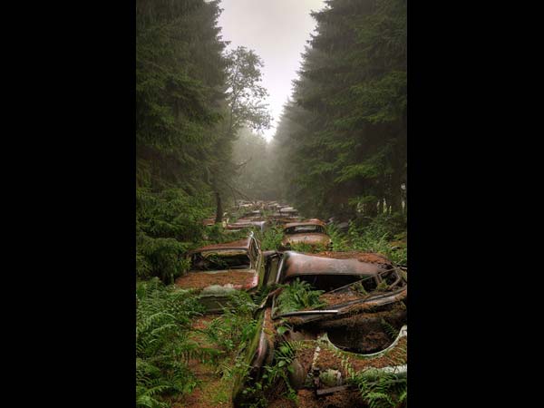 பெல்ஜியம் நாட்டின் சாட்டிலான் என்ற இடத்தில் இருக்கும் வனாந்திரத்தில்தான் இந்த கார்கள் நிறுத்தப்பட்டிருக்கின்றன. அந்த கார்கள் மழையிலும், வெயிலிலும் சிதைந்து எலும்பு கூடு போல் காட்சியளிக்கின்றன.