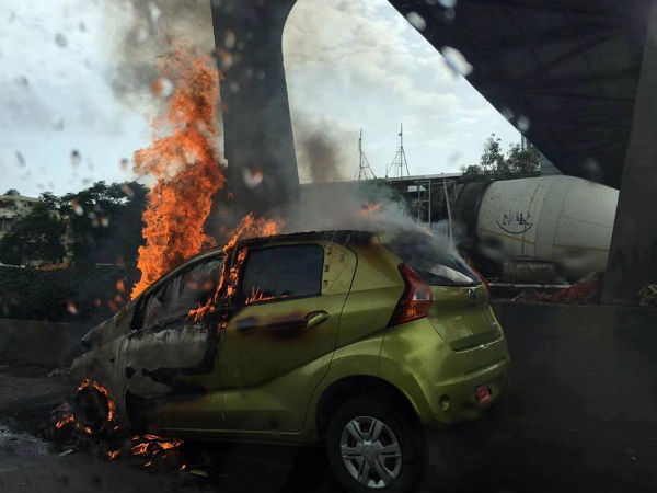 மும்பையில் தீப்பிடித்து எரிந்த டட்சன் ரெடிகோ கார்... அடுத்த நானோவா என பீதி!