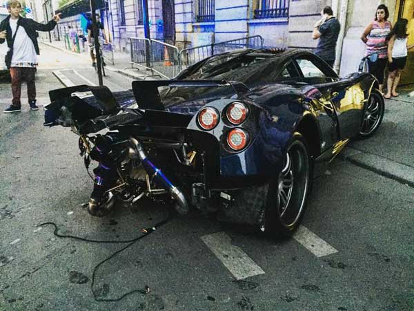 பாரீஸில் விபத்துக்குள்ளாகி உருக்குலைந்த பகானி ஹூய்ரா பேர்ல் ஒன்-ஆஃப் கார்...