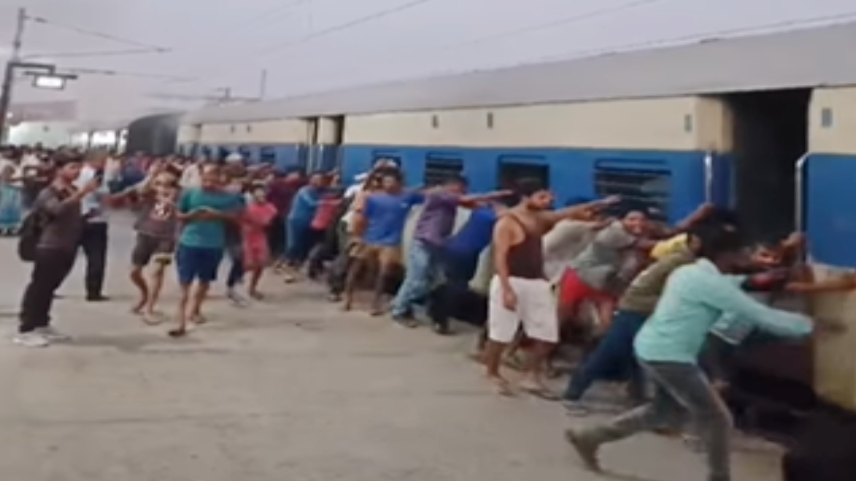 கார், பஸ் மாதிரி ரயிலை தள்ளிய பயணிகள்! உண்மையில் என்ன நடந்தது தெரியுமா? வைரலாகும் வீடியோ!