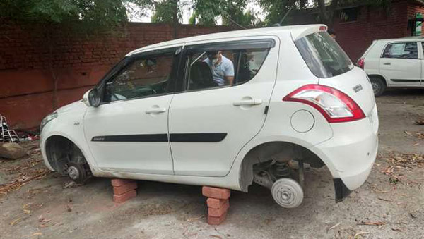 நள்ளிரவு, இருட்டை பயன்படுத்தி கொண்டு காரின் 4 சக்கரங்களையும் திருடர்கள் திருடி சென்றுள்ளனர். இதுதொடர்பாக மருத்துவமனை உயர் அதிகாரி டாக்டர் ராகேஷ் சர்பால் மூலம் போலீசில் புகார் அளிக்கப்பட்டுள்ளது. அவர்கள் விசாரணை நடத்தி வருகின்றனர் என கூறினார்.
