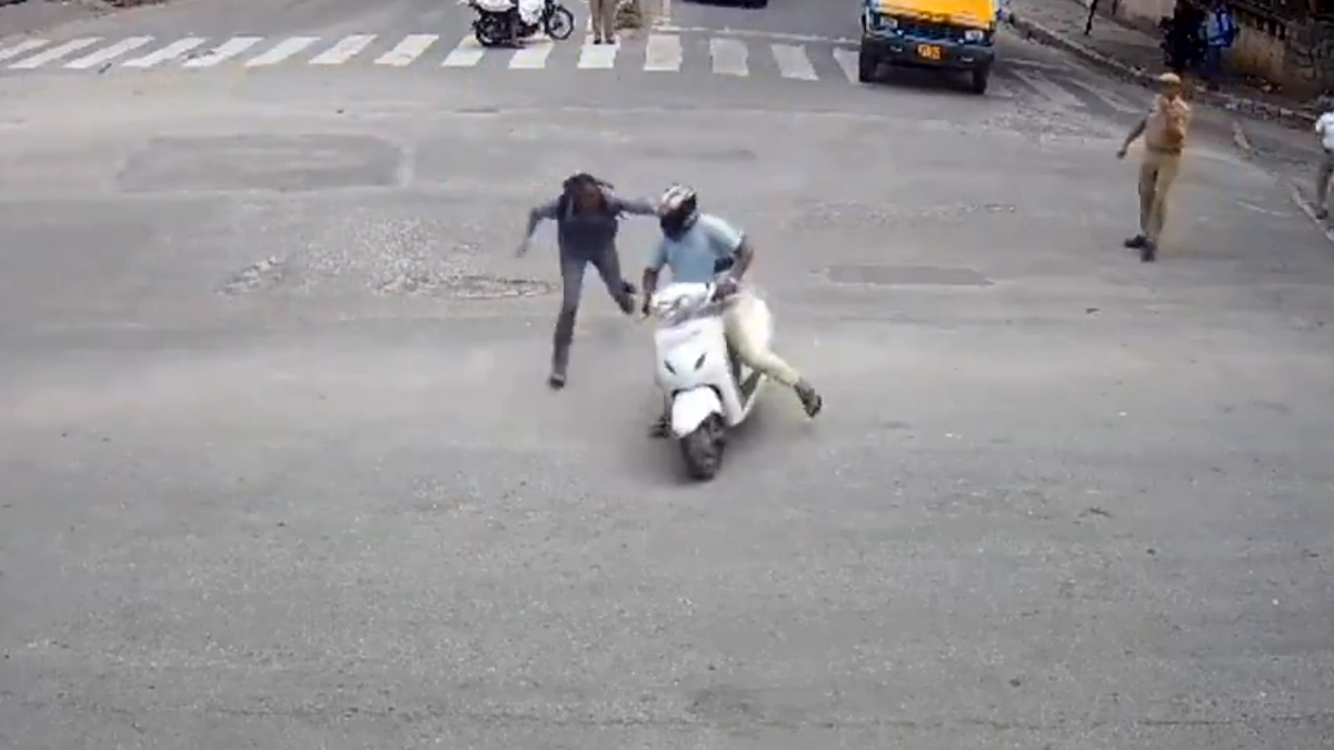 ஆனால் போலீஸ் கான்ஸ்டபிள் தொட்ட லிங்கையா, அவரை விடவில்லை. மஞ்ஜேஷின் சட்டை காலரை பிடித்து கொண்டார். அப்போது மஞ்ஜேஷ் ஹோண்டா ஆக்டிவா ஸ்கூட்டரை முறுக்கவே, போலீஸ் கான்ஸ்டபிள் தொட்ட லிங்கையா சிறிது நேரம் தரதரவென இழுத்து செல்லப்பட்டார். ஒரு கட்டத்தில் சாலையில் கீழே விழுந்த போதும் கூட போலீஸ் கான்ஸ்டபிள் தொட்ட லிங்கையா, மஞ்ஜேஷை விடவில்லை.