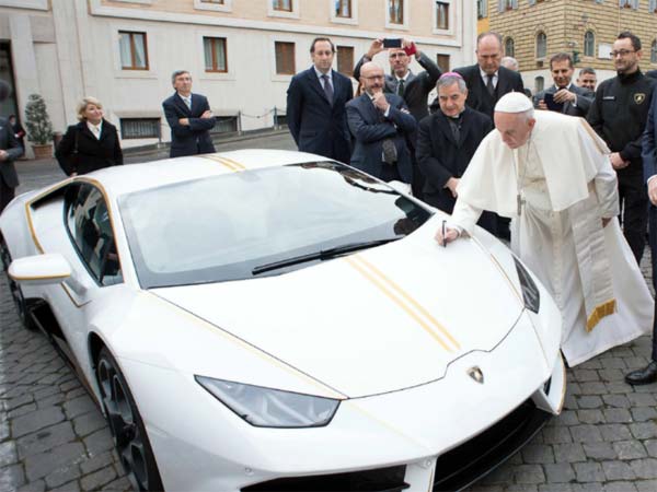 கத்தோலிக்க திருச்சபையின் போப்பாண்டவர் ஃபிரான்சிஸிற்கு ரியர் வீல் டிரைவ் கொண்ட லம்போர்கினி ஹூரகேன் கார் பரிசளிக்கப்பட்டுள்ளது.