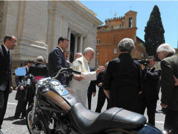 ஹார்லி டேவிட்சனின் 110வது ஆண்டு விழாவையொட்டி, கடந்த ஆண்டு போப் ஆண்டவருக்கு ஹார்லி டேவிட்சன் நிறுவனம் புதிய மோட்டார்சைக்கிள் ஒன்றை பரிசாக வழங்கியது. இந்த மோட்டார்சைக்கிளை ரோம் ஏழைகள் அறக்கட்டளைக்கு போப் ஆண்டவர் நன்கொடையாக வழங்கினார்.