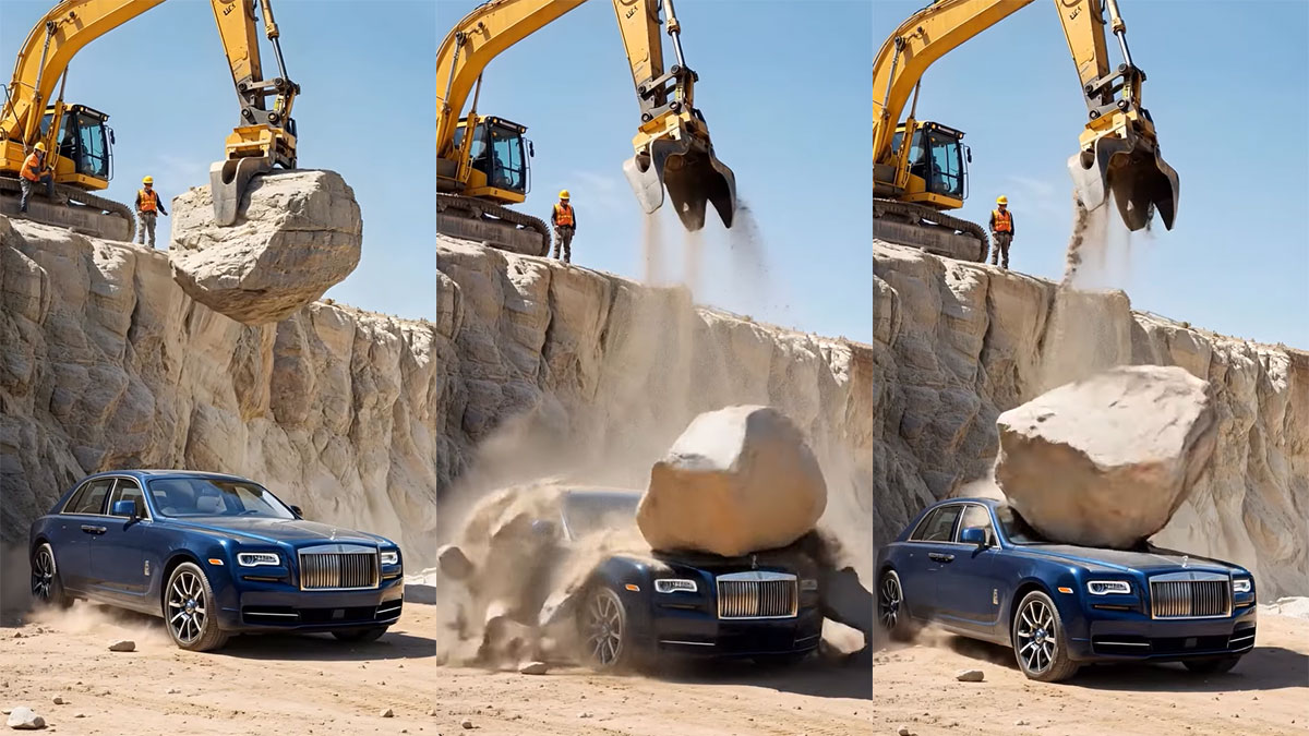 ஆனால் உண்மையில் இந்த வீடியோவை நாம் ஒன்று கவனிக்கும்போது இது உண்மையான வீடியோ இல்லை என்பது நமக்கு தெளிவாக புரியும். தற்போது செயற்கை நுண்ணறிவு தொழிற்நுட்பங்கள் மிகப்பெரிய அளவில் வந்து விட்டதால் அந்த தொழிற்நுட்பத்தை பயன்படுத்தி எடுக்கப்பட்ட வீடியோவாக இது இருக்கிறது. இந்த வீடியோவின்படி rolls-royce நிறுவனத்தின் கோஸ்ட் கார் மீது மிகப்பெரிய பாறாங்கல் ஒன்று விழுகிறது.