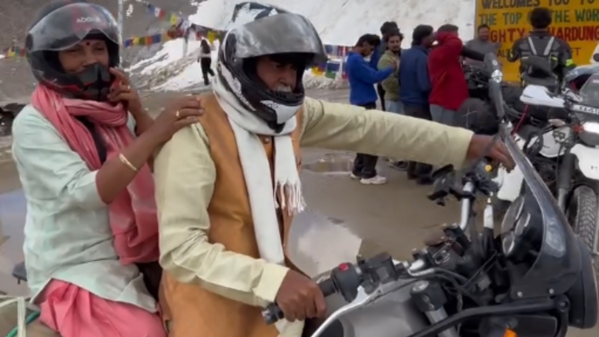 ஆனால், அப்படிப்பட்ட சுமார் 17 ஆயிரத்து ஐநூறு அடி உயரம் கொண்ட கார்டங் லா பாஸ் (Khardung La Pass) வழியாக ஒரு வயதான தம்பதி ராயல் என்ஃபீல்டு ஹிமாலயன் 411 (Himalayan 411) பைக்கில் ஜோடியாக பயணம் செய்து ஆச்சிரியப்படுத்தி உள்ளனர். லடாக்கில் உள்ள கார்டங் லா பாஸ் வழியாக இந்த தம்பதியினர் தங்களது ராயல் என்ஃபீல்டு பைக்கில் சென்ற போது அதனை ஒருவர் வீடியோவாக காட்சிப்படுத்தி இணையத்தில் வெளியிட்டுள்ளார்.