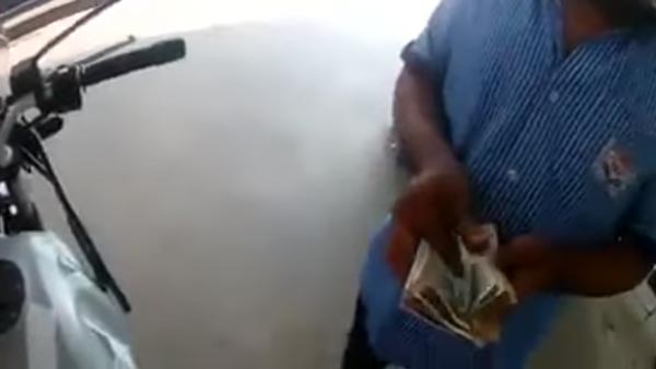 அவருக்கு மீதி 450 ரூபாய் கொடுக்கப்பட வேண்டும். இப்போது எரிபொருள் நிரப்பிய ஊழியரிடம் ஏராளமான நோட்டுகள் கத்தையாக இருந்தன. எனவே மீதி பணத்தை கொடுப்பதற்காக அவர் தன்னிடம் இருந்த நோட்டுகளை எண்ணினார். முதலில் ஒரு 50 ரூபாய் நோட்டை அந்த இளைஞரிடம் அவர் கொடுத்து விட்டார். இதன்பின்பு நான்கு 100 ரூபாய் நோட்டுகளை அவர் எண்ணினார்.