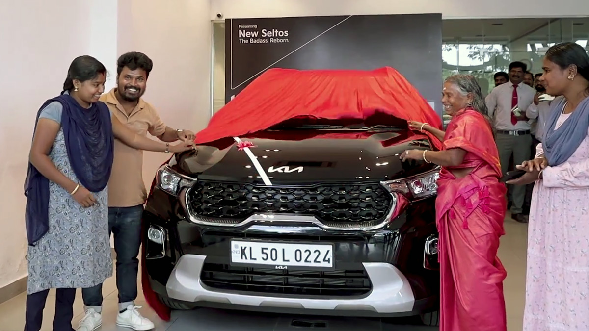 இந்திய சந்தையில் மிகவும் பிரபலமாக இருந்து வரும் கார்களில் ஒன்று கியா சொனெட் (Kia Sonet). இது சப்-4 மீட்டர் காம்பேக்ட் எஸ்யூவி ரகத்தை சேர்ந்த கார்களில் ஒன்றாகும். இந்த சூழலில் மூதாட்டி ஒருவர் கியா சொனெட் காரை டெலிவரி எடுக்கும் புகைப்படங்கள், சமூக வலை தளங்களில் தற்போது வைரலாக பரவி வருகின்றன.