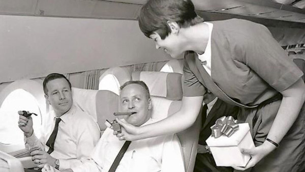 ஏன், விமானத்தில் புகைப்பிடிக்க ஊக்குவித்தலும் செய்யப்பட்டது. 1980களின் பிற்பகுதி வரை இது நடைமுறையில் இருந்தது. இதற்கு பின்னரே புகைப்பிடத்தலுக்கு தடை விதிக்கப்பட்டது. இதற்கு முன்னர் வரை விமான பணிப் பெண்கள் மற்றும் உதவியாளர்கள் பயணிகளுக்கு தேவை எனில் சிகரெட்டை பற்ற வைக்கும் செய்துக் கொண்டிருந்தார்கள்.