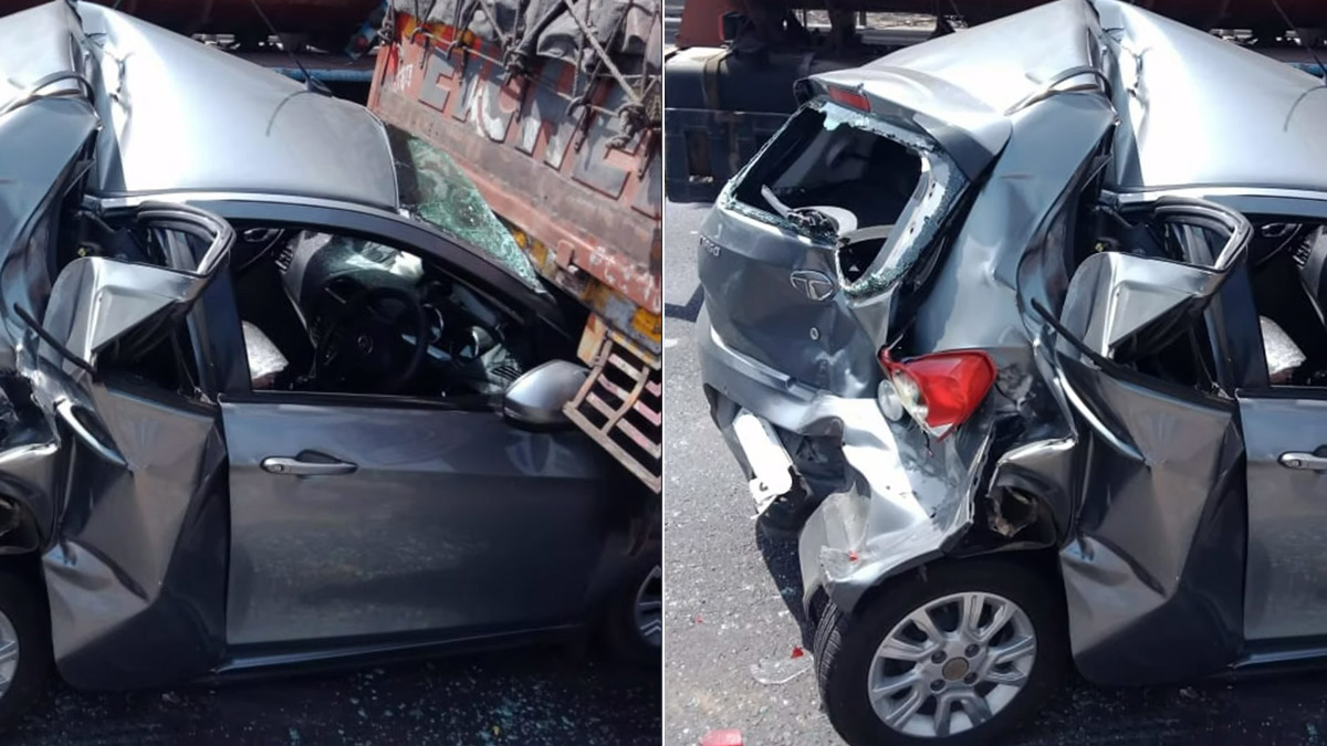 ஆனால் காருக்கு உள்ளே இருந்த டிரைவர், அதிர்ஷ்டவசமாக எந்தவிதமான காயமும் இல்லாமல் உயிர் தப்பியுள்ளார். குஜராத் மாநிலம் ராஜ்கோட் எக்ஸ்பிரஸ்வே சாலையில் இந்த விபத்து நடைபெற்றதாக தகவல்கள் தெரிவிக்கின்றன. இந்த சம்பவத்தில், டாடா டியாகோ கார் எதிர்பாராதவிதமாக ஒரு லாரியின் பின் பகுதியில் சிக்கி கொண்டுள்ளது.