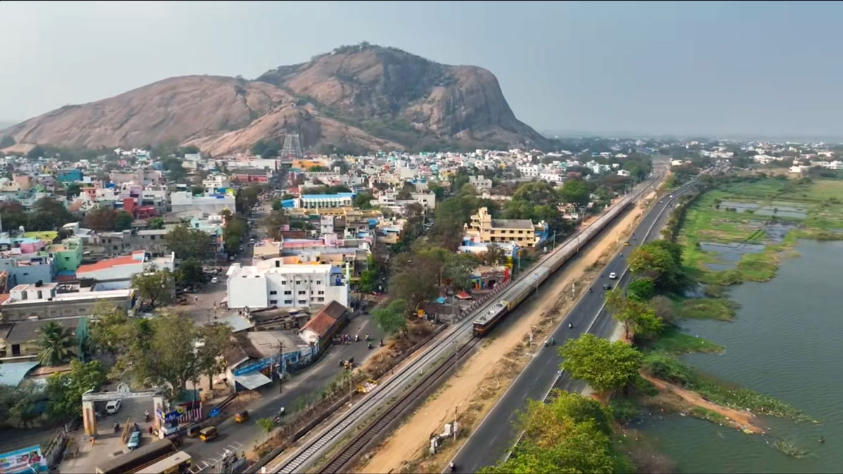 தெற்கு ரயில்வே நிர்வாகம் சமீபத்தில் தனது எக்ஸ் தள பக்கத்தில் ஒரு வீடியோ ஒன்றை பகிர்ந்து இருந்தது. அந்த வீடியோ ட்ரோன் மூலம் எடுக்கப்பட்ட வீடியோ காட்சியாக இருந்தது அதில் சாலைக்கு அருகே உள்ள ரயில்வே பாதையில் ரயில் ஒன்று வந்து கொண்டிருப்பதாக இருக்கிறது. இந்த வீடியோ பலரை கவர்ந்துள்ளது. இந்த வீடியோ எங்கு எடுக்கப்பட்டது உள்ளிட்ட அனைத்து விபரங்களையும் காணலாம் வாருங்கள்.