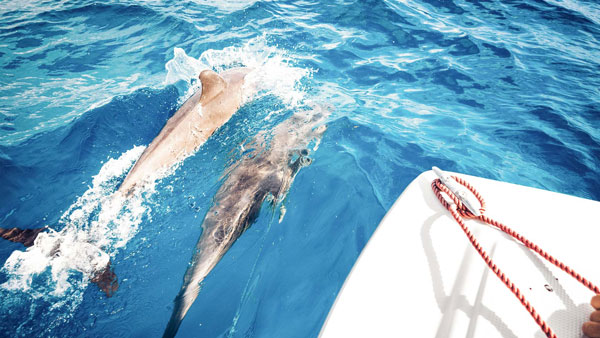 அத்துடன் கப்பல் மற்றும் படகுகள் தண்ணீரில் செல்லும்போது உருவாகும் அலைகள், டால்பின்கள் பெரிதாக அலட்டி கொள்ளாமல் வேகமாக செல்வதற்கு உதவுகின்றன. அதாவது அதிக சக்தியை செலவழிக்காமலேயே டால்பின்களால் கூடுதல் தூரம் பயணிக்க முடியும். இதன் மூலமாக ஒரு இடத்தில் இருந்து மற்றொரு இடத்திற்கு டால்பின்கள் எளிதாக செல்லும்.
