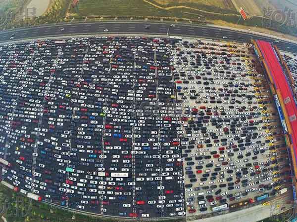 சீனாவின், தேசிய தினத்தையொட்டி அங்கு ஒருவார காலம் தொடர் விடுமுறை அளிக்கப்பட்டிருந்தது. இந்தநிலையில், விடுமுறை முடிந்து, ஒரே நேரத்தில் தலைநகர் பீஜிங் நோக்கி மக்கள் வாகனங்களில் திரும்பியதால் அங்குள்ள சுங்கச்சாவடிகளில் நீண்ட வரிசையில் வாகனங்கள் குவிந்தன.