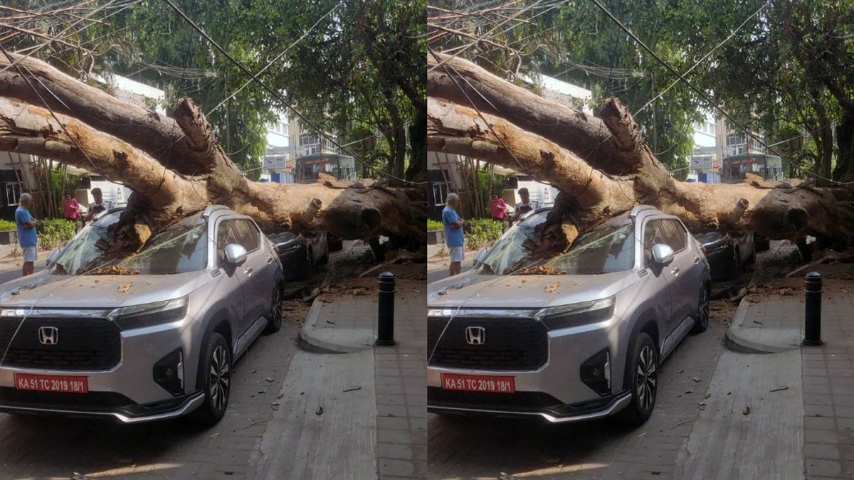 பெங்களூரில் பிராண்ட்-நியூ ஹோண்டா எலேவேட் (Honda Elevate) கார் ஒன்றின் மீது மரம் விழுந்து சேதமடைந்துள்ளது. அவ்வளவு பெரிய மரம் விழுந்த போதிலும் காரின் மேற்கூரை பெரியதாக சேதமடையாததது ஆச்சிரியத்தை ஏற்படுத்தி உள்ளது. இதுதொடர்பாக இணையத்தில் வெளியிடப்பட்டுள்ள படத்தை இனி இந்த செய்தியில் பார்க்கலாம்.