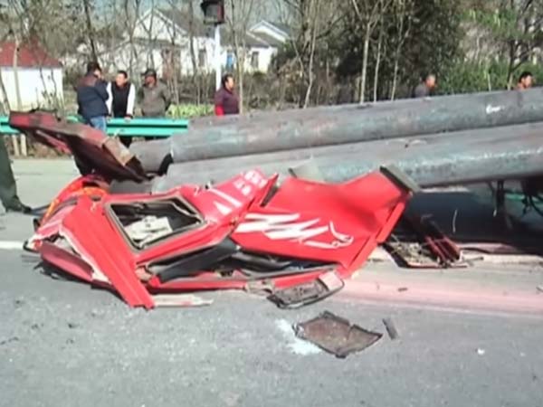 சீனாவின், அன்ஹுய் மாகாணத்தில் உள்ள சூஸோ என்ற நகரில் இந்த விபத்து நடந்தது. அங்குள்ள சாலை சந்திப்பை கடக்க முற்பட்டபோது அந்த டிரக் விபத்தில் சிக்கியது.