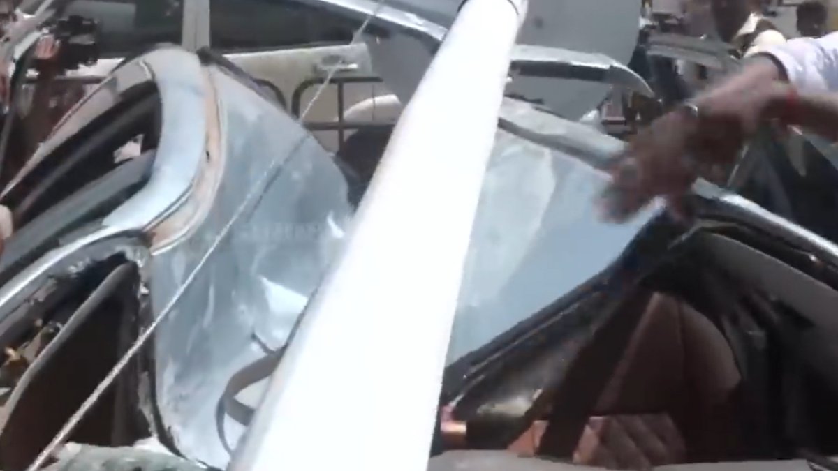 கொடி கம்பத்தின் எடை 10 ஆயிரம் கிலோவா! காரை இனி எடைக்குதான் போடணும்! சல்லி சல்லியா நொறுக்கீட்டாங்க!