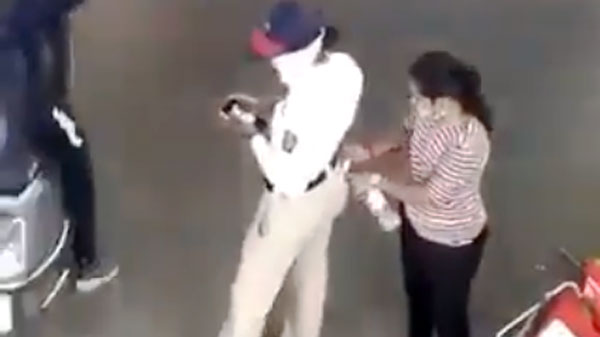 இதன்பின் ஸ்கூட்டரில் வந்த பெண் தன்னுடைய பாக்கெட்டில் இருந்து ரூபாய் தாளை எடுத்து, யாருக்கும் தெரியாதபடி, பெண் போக்குவரத்து காவல் துறை அதிகாரியின் பேண்ட் பாக்கெட்டில் வைக்கிறார். இந்த சம்பவம் நடைபெற்ற சமயத்தில் சாலை பரபரப்பாக இயங்கி கொண்டிருந்தது. வாகனங்கள் இயங்கும் சப்தத்தையும் இந்த காணொளியில் கேட்க முடிகிறது.