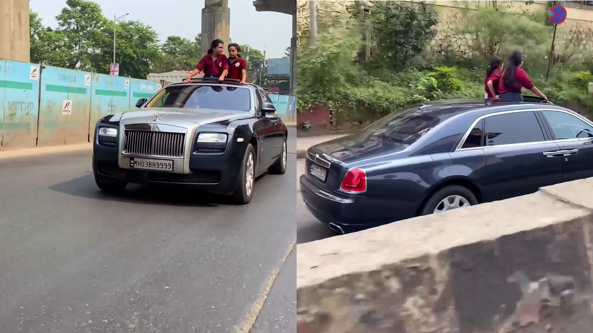 அனேகமாக ரோல்ஸ் ராய்ஸ் நிறுவனத்தின் கார் ஒன்றில், சன்ரூஃப் வழியாக 2 இளம்பெண்கள் நின்று கொண்டே பயணம் செய்வதை நம்மில் பலரும் பார்க்கும் முதல் வீடியோ இதுவாகதான் இருக்கும். ஆனால் இப்படி நின்று கொண்டே பயணம் செய்வதற்காக கார்களில் சன்ரூஃப் வழங்கப்படுவதில்லை. இவ்வாறு செய்வது ஆபத்தானது என்பதுடன், சட்ட விரோதமானதும் கூட.