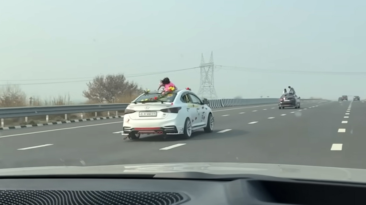 யூடியூபர் ஒருவர் ராஜஸ்தான் மாநிலம் ஜெய்ப்பூரில் இருந்து ஹரியானா மாநிலம் குர்கான் நோக்கி காரில் சென்று கொண்டிருந்தபோது, இந்த வீடியோ எடுக்கப்பட்டுள்ளது. அவர் கண்களில் சிக்கிய 4 ஹூண்டாய் வெர்னா கார்களில், 3 கார், பூக்கள் மற்றும் ரிப்பன்கள் மூலம் அலங்கரிக்கப்பட்டிருந்தது.