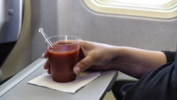 எலெக்ட்ரோலைட்களை பெற உதவி செய்வதாலும், விமானத்தில் பயணிகள் விரும்பும் பானங்களில் தக்காளி ஜூஸ் மிகவும் முக்கியமானதாக உள்ளது. அத்துடன் விமானங்களில் தொற்று நோய்கள் ஏற்படுவதற்கான வாய்ப்புகளையும் தக்காளி ஜூஸ் குறைக்கிறது. பொதுவாக விமானங்கள் மிகவும் நெருக்கடியான இருக்கைகளை கொண்டிருக்கும்.