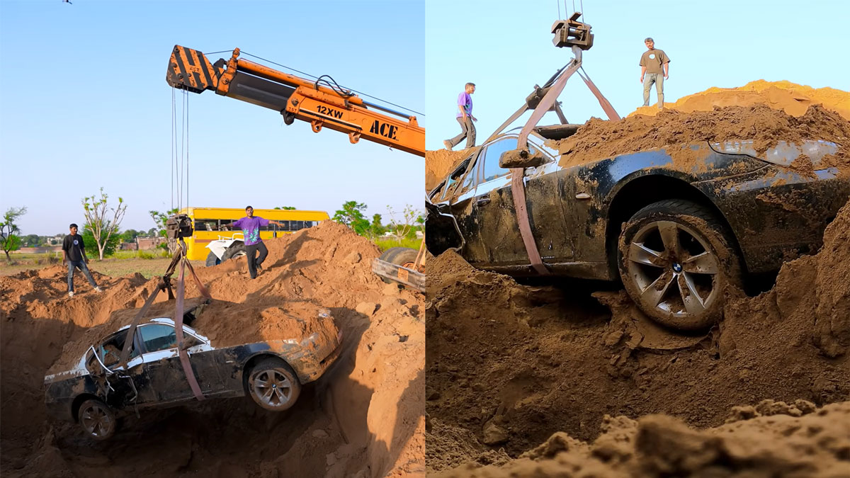 இதுமட்டுமல்ல மிகவும் உயரமான இடத்தில் இருந்து வாகனங்களை தள்ளிவிடுவது, வேண்டும் என்றே அபாயகரமான ஆயுதங்களைக் கொண்டு வாகனங்களைச் சேதப்படுத்துவது உள்ளிட்ட மோசமான செயல்களையும் செய்துக் கொண்டிருக்கின்றனர். இந்த மாதிரியான சூழலிலேயே ஓராண்டிற்கு முன்னர் புதைக்கப்பட்ட பிஎம்டபிள்யூ கார் தற்போது வெளியே எடுக்கப்பட்ட நிகழ்வு நம் நாட்டில் அரங்கேறி இருக்கின்றது.