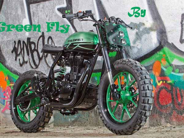 ராயல் என்ஃபீல்டு கிளாசிக் 500 மோட்டார்சைக்கிளின் உதிரிபாகங்கள் மற்றும் கான்டினென்டல் ஜிடி மோட்டார்சைக்கிளின் ஃப்ரேம் பயன்படுத்தி கஸ்டமைஸ் செய்துள்ளனர். ராயல் என்ஃபீல்டு க்ரீன் ஃப்ளை என்ற பெயரில் அழைக்கப்படுகிறது.