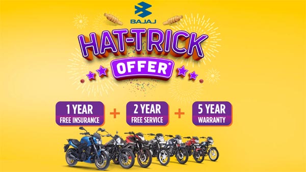 புதிய பஜாஜ் பைக்குகளை வாங்கும் வாடிக்கையாளர்களுக்கு மூன்று அதிரடி சலுகைகளை பஜாஜ் ஆட்டோ நிறுவனம் அறிவித்துள்ளது. பஜாஜ் ஹாட்ரிக் ஆஃபர் என்ற பெயரில் வந்திருக்கும் இந்த சிறப்பு சலுகைகள் குறித்த விபரங்களை இந்த செய்தியில் பார்க்கலாம்.