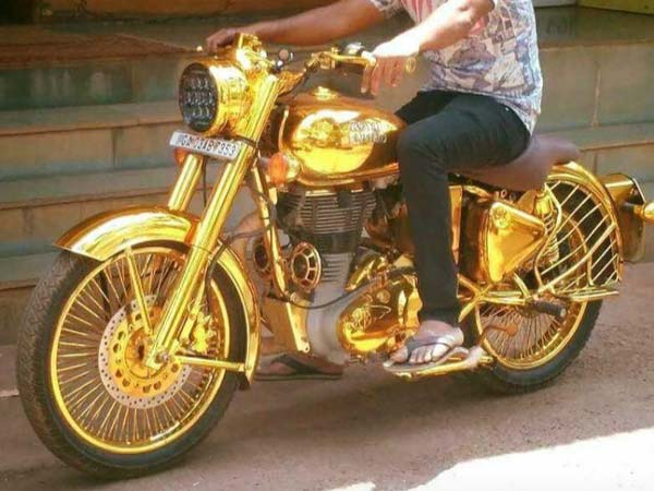 இந்த ராயல் என்பீல்டு கிளாசிக் பைக் கோவாவில் படம் பிடிக்கப்பட்டது. இந்த பைக்கின் ஹெட்லைட், சஸ்பென்ஸன், வீல், டிஸ்க் பிரேக் என அனைத்து இடங்களும் தங்க நிறத்தால் ஜொலிக்கிறது.